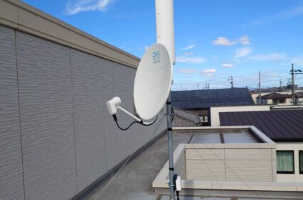 古くなった地デジアンテナとBSアンテナを撤去し、新しいアンテナとブースターに交換しました。